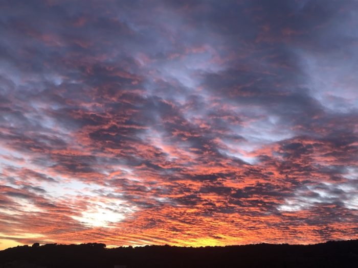 こんなに燃えるような夕焼けが出ていて驚いてしまった。