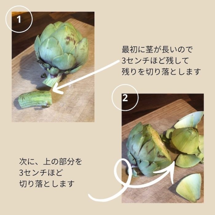 茹でる場合はお酢を小さじ2ほど入れて水の状態からアーティチョークを入れ