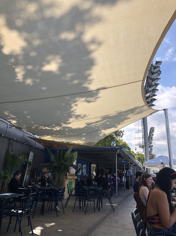 様々な飲み物に軽いおつまみ、ピザやサンドイッチなどの軽食が食べられる上に