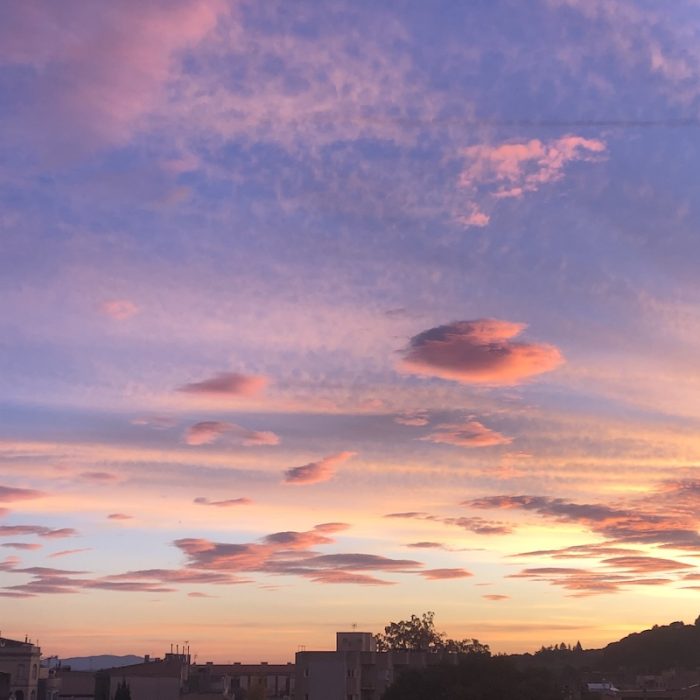 下の写真はバルセロナ郊外の我が家のベランダからの夕焼けです。